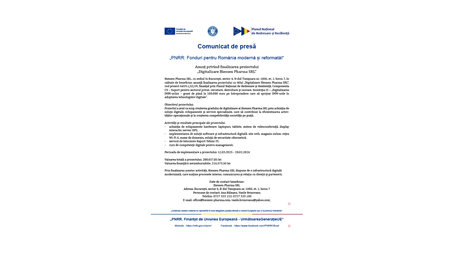 Comunicat de presă „PNRR: Fonduri pentru România modernă și reformată!“ [...]